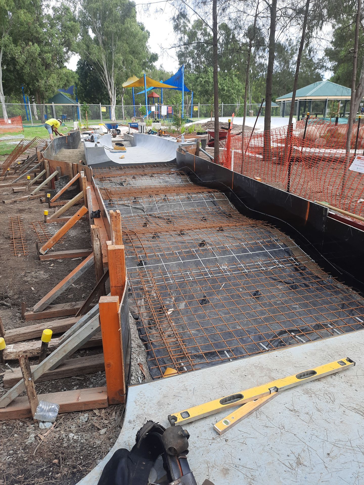- Formwork setup for precise shaping of concrete